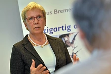 Die Senatorin für Wissenschaft, Gesundheit und Verbraucherschutz, Prof. Dr. Eva Quante-Brandt, hielt ein Grußwort, dankte dem Verein Autismus Bremen – der sich seit 45 Jahren für Menschen mit Autismus engagiert – und zollte dem Verein große Hochachtung. "Inklusion ist ein richtiger und gemeinsamer Weg für unser Leben! Die Ressourcen und Kompetenzen des jeweiligen Gegenübers müssen erkannt werden und man darf nicht vor den Besonderheiten von autistischen Menschen zurück schrecken", so die Senatorin. Im Gegenteil – "die Gesellschaft sollte sich auf die speziellen Eigenschaften des Autisten zu bewegen und Akzeptanz entwickeln". Prof. Dr. Quante-Brandt versprach, künftig den Verein insbesondere im Bereich der wissenschaftlichen Forschung über Autismus zu unterstützen. "Das ist auf meiner persönlichen Agenda, und ich werde das weiter verfolgen".