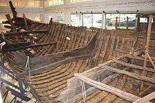 Im Zentrum der neuen Ausstellung steht aber weiterhin das ikonografische Schiff in seinem unfertigen Zustand – genau an dem Standort in der Mitte des Raumes, der, bevor er Museumsraum wurde, Werkstattraum für das Zusammensetzen der Kogge war. Diese kann nun auf drei Ebenen sehr nah umrundet und ihren Spuren vom Mittelalter bis ins 20. Jahrhundert verfolgt werden: