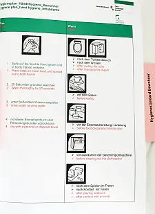 Informationen darüber, wie man sich richtig die Hände wäscht oder desinfiziert, gibt es auf 50 Seiten in einer Informationsbroschüre des Gesundheitsamtes. Die Tipps sollen Geflüchteten und Mitarbeiterinnen und Mitarbeitern von Unterkünften helfen, besser mit Hygiene und Krankheiten umzugehen. Die Tipps sind in Englisch, Französisch, Arabisch, Farsi und Deutsch verfasst. Ergänzt werden sie mit Grafiken und Piktogrammen. Das Gesundheitsamt Bremen bietet für die Mitarbeiterinnen und Mitarbeiter von Unterkünften auch eine Schulung an.
